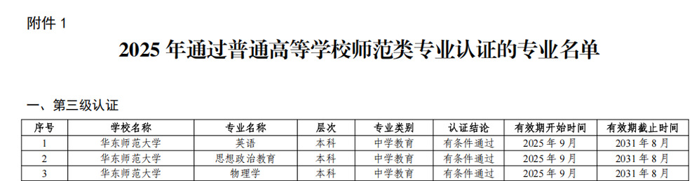 近日,教育部办公厅正式发布《关于公布2025年通过普通高等学校师范类专业认证名单及中期审核专业名单的通知》(教师厅函〔2025〕18号),我校教育技术学和应用心理学专业顺利通过教育部普通高等学校师范类专业第二级认证,认证结论有效期六年(2025年9月起至2031年8月止),标志着我院师范类专业建设取得了新的突破。