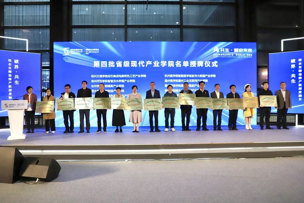 近日,湖州师范学院生命科学学院牵头申报的“智慧淡水养殖产业学院”成功入选2025年浙江省省级重点支持现代产业学院。11月6日,在乌镇互联网国际会展中心举行的“2025年产教融合暨校企双聘推进会”上,学校教务处副处长阮冬生、学院教学副院长吴湘,以及相关处室工作人员代表学校参会并接受授牌。该会议由浙江省经济和信息化厅、浙江省教育厅联合主办,旨在深化产教融合、推动校企双聘机制落地见效。