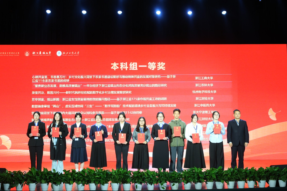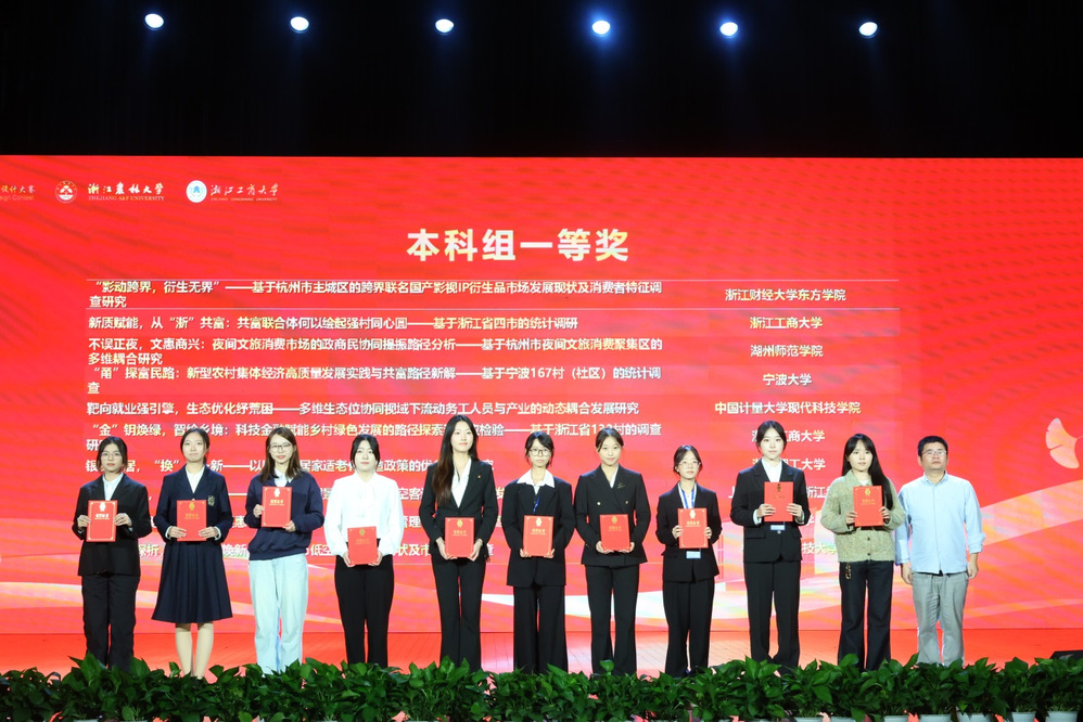 11月7日至8日,浙江省“民生民意杯”第十四届大学生统计调查方案设计大赛在浙江农林大学圆满结束。在本届大赛中,我校代表队凭借出色的表现,最终斩获一等奖3项、二等奖1项、三等奖4项。本届大赛由浙江省教育厅、浙江省统计局联合主办,共有来自全省80所高校的659支队伍参赛。经过激烈的角逐,最终155支队伍进入答辩环节。