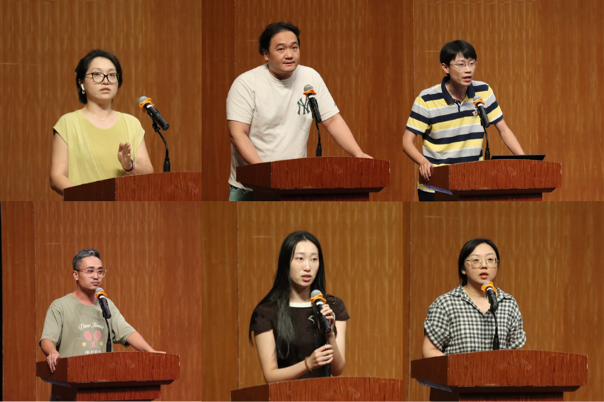 随后,各教研室及艺术团负责人分别就本专业课程设置及选拔要求进行详细介绍:钢琴教研室主任冷畅老师从钢琴主修、辅修课程安排及阶段性考核要求等方面进行说明,并强调了日常练习和阶段性汇报演出的重要性;声乐教研室主任徐川老师介绍了声乐专业的培养重点,包括发声训练、曲目积累、舞台表现等内容,并鼓励学生积极参与艺术实践;理论教研室主任、西洋管弦乐团指导老师邓肯就音乐理论课程体系、乐团选拔与训练计划进行了梳理,强调理论修养与艺术实践的相辅相成;实践教研室主任、舞蹈团指导老师彭珏非从舞蹈基本功训练、剧目排练、演出机会等方面展开说明,鼓励新生早日融入集体、展现自我;民乐团指导老师姚元鹏重点介绍了民族器乐与舞蹈方向的课程特色,并展示了民乐团近年来的优秀成果;合唱团指导老师杨晨则介绍了合唱团的招募要求与年度演出计划,呼吁热爱合唱的同学积极加入。