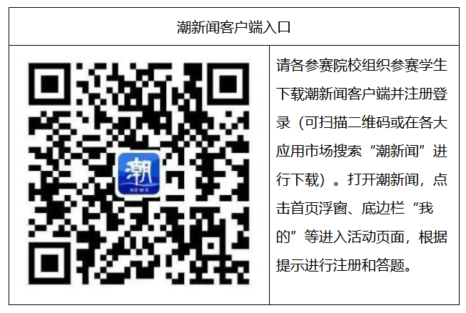 (一)初赛。2025年11月24日至28日,在潮新闻客户端进行初赛线上答题。各学院组织学生积极参赛,杜绝作弊行为。如有学生个人作弊行为的,取消个人成绩。