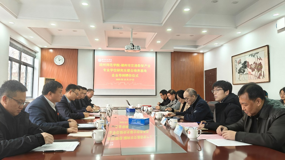 2025年12月17日,理学院联合浙江省交通集团高速公路湖州管理中心共同举办了“交通数智产业专业学位研究生联合培养基地企业导师聘任仪式暨学术交流”活动。双方单位相关负责人、教师代表、企业专家及本硕学生共同参与。
