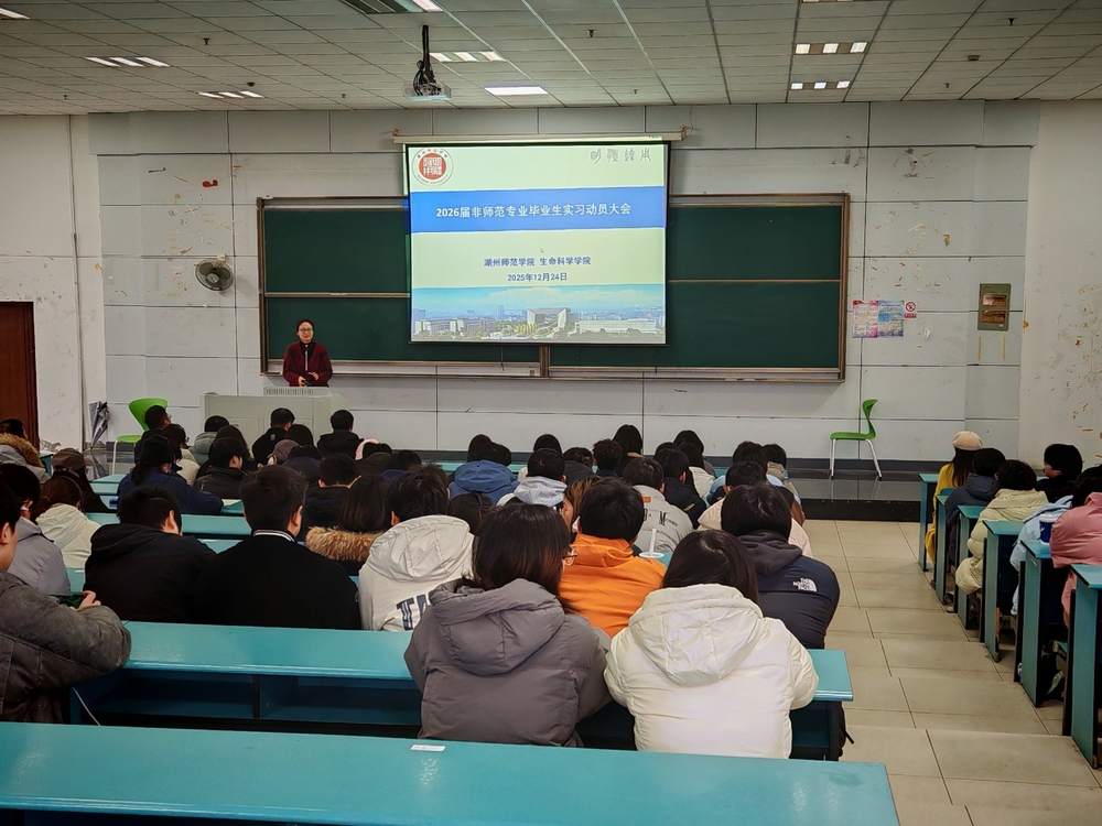 为确保非师范专业毕业生实习工作的顺利进行,提升学生的实践能力和职业素养,促进学生高质量就业。12月24日,生命科学学院召开了2026届非师范专业毕业生实习动员大会。学院教学副院长吴湘和党委副书记金建敏、各专业分管实习的系主任、学工办主任以及毕业班学生参加了此次动员会。